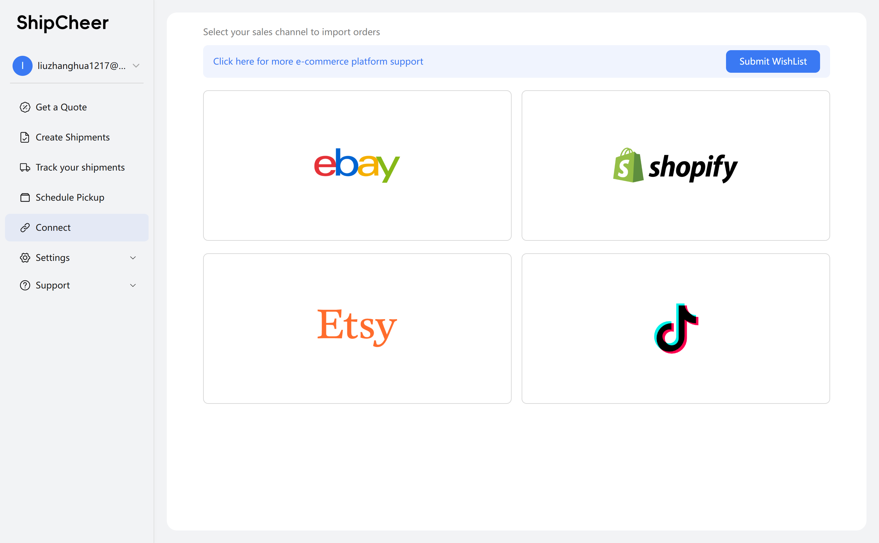 Connect to e-commerce platforms to automatically import orders, so that you can quickly purchase labels and ship, improve efficiency and save time.